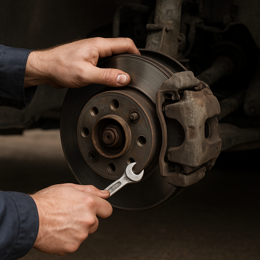 - Czyszczenie – usuwanie osadów i rdzy z tarcz przy użyciu środka do czyszczenia hamulców.