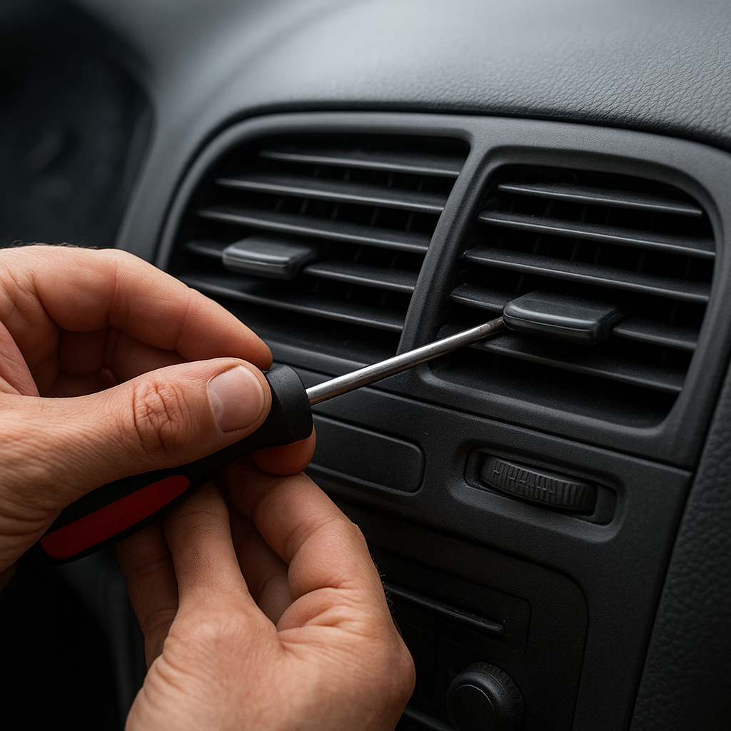 Jeśli zakres kierowania nawiewem jest zablokowany, najczęściej zawodzi serwomechanizm lub łamie się plastikowa dźwignia. Wymiana obejmuje: