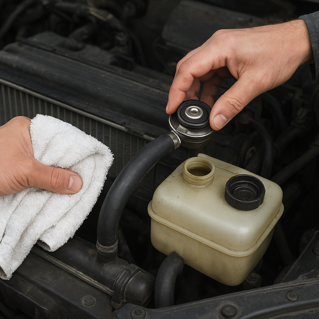 • Zdjąć korek chłodnicy lub zbiorniczka, włączyć silnik na biegu jałowym.