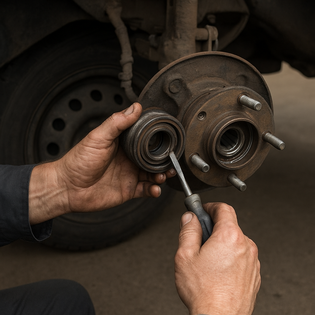 - Użyj ściągacza do łożysk, aby wysunąć zużyty element z piasty.